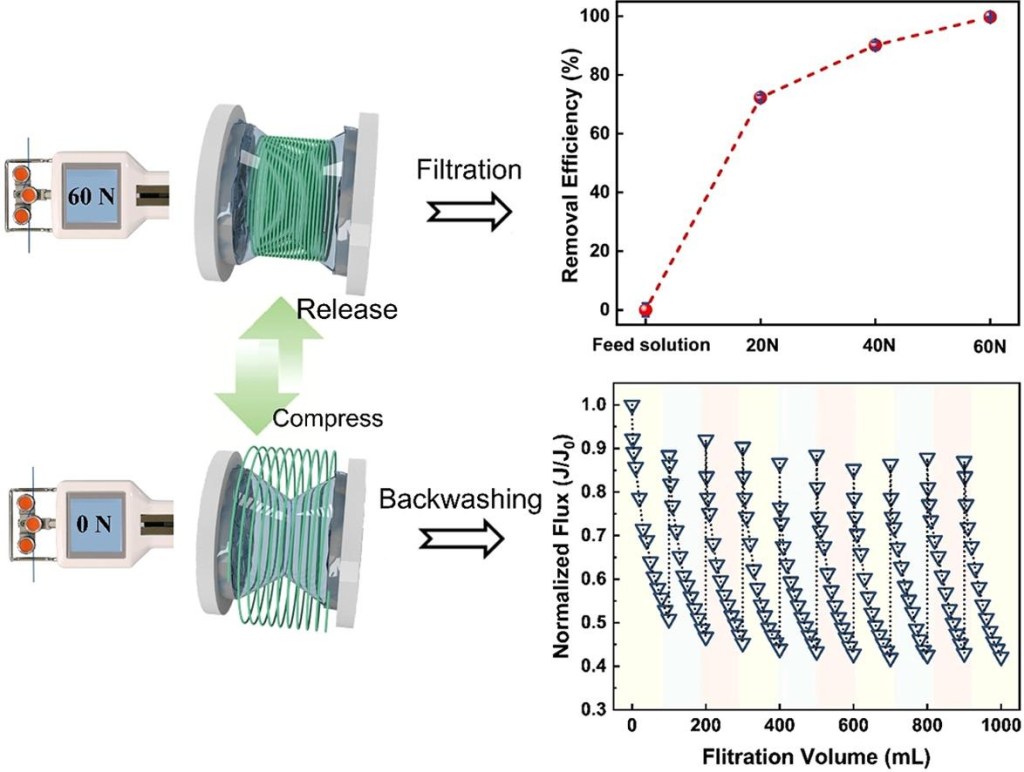 Dynamic pore modulation of contracted carbon fiber filter for wastewater treatment: Filtration performance and in-situ regeneration mechanism